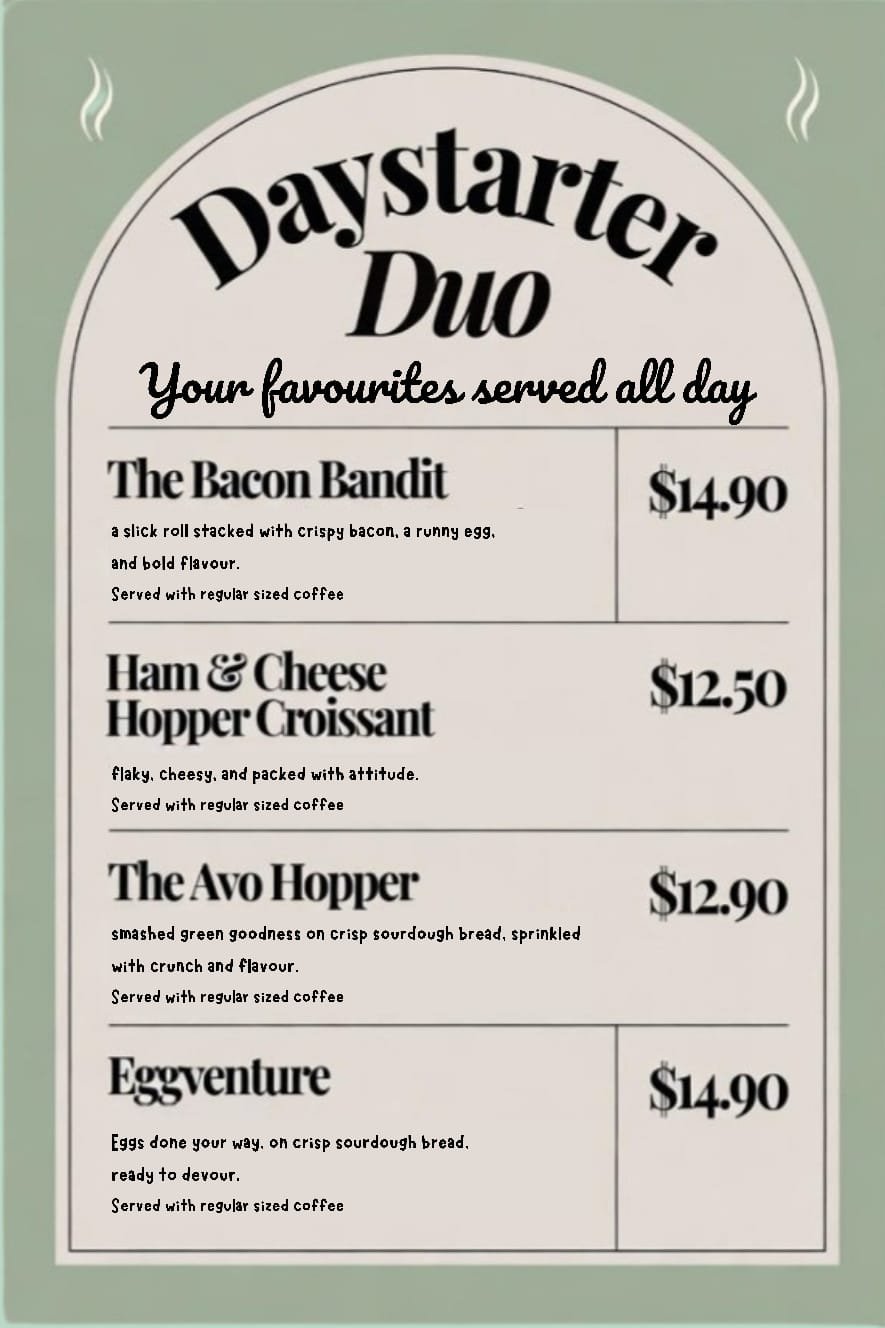 The Avo Hopper is smashed avocado so ridiculously creamy and bright it glows, piled high on sizzling sourdough toast, finished with a crunch that echoes. One forkful and you’ll swear you can hear the ocean.